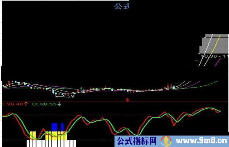 D: EMA(0.667*REF(K,1)+0.333*K,2),COLORGREEN,LINETHICK2;