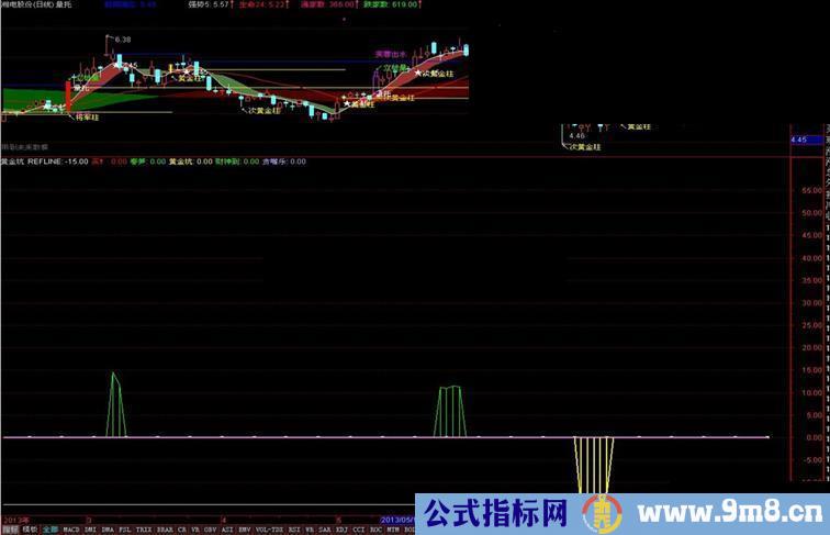 黄金坑: IF(VARD,VARA,0),LINESTICK ,LINETHICK2, COLORYELLOW;