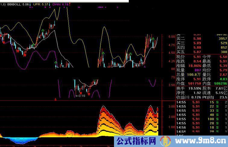 STICKLINE(买卖差<0,(卖线+买卖差*0.4),(卖线+买卖差*0.55),5,0) ,COLOR00CC00;