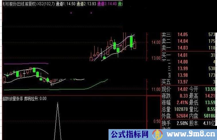 MA20:=MA(C,20); MA60:=MA(C,60),COLORRED; MA120:=MA(C,120); FF:=MA20MA120 AND MA60 >MA120; S1:=COUNT(FF,30)>0; S2:=V>=1.91*REF(V,1); S3:=CROSS(C,MA60) AND MA120>=REF(MA120,1); 即将拉升:S1 AND S2 AND S3;