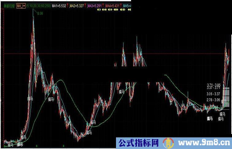 DRAWTEXT(CROSS(RSI,7.1) AND MA(V,5)>MA(V,10) AND MA(C,5)>MA(C,10) AND MA(C,20)>MA(C,30) AND C>MA(C,120),L*0.79,'擒马'),COLORWHITE;
