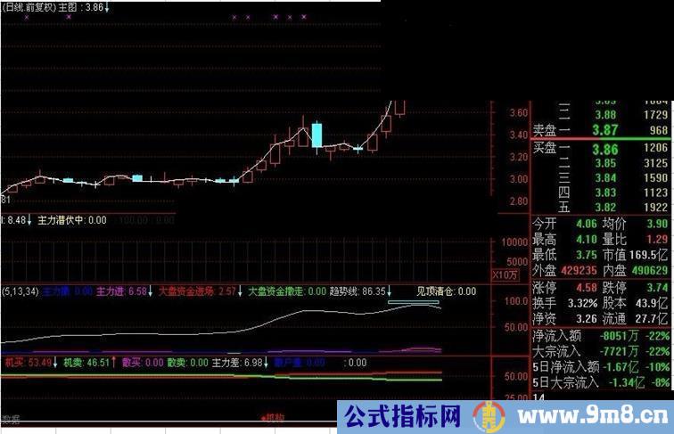 4.通达信主力资金分时指标公式【大盘资金进场、准备现金、见顶清仓】