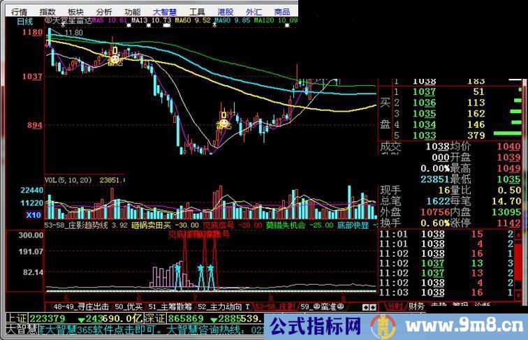 底部快显:if(cross(-20,趋势线),100,-20),linethick2,colorf0f000;