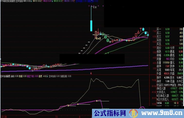 副图出现上三角形即可参与,三角形旁边的白线为空中加油的支撑位。
