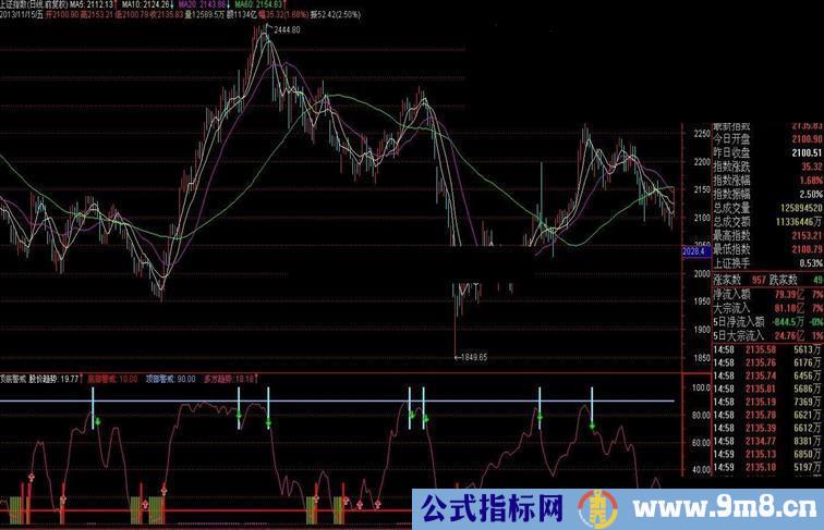 今发现一通达信顶底警戒公式,能准确提示波段的高低点