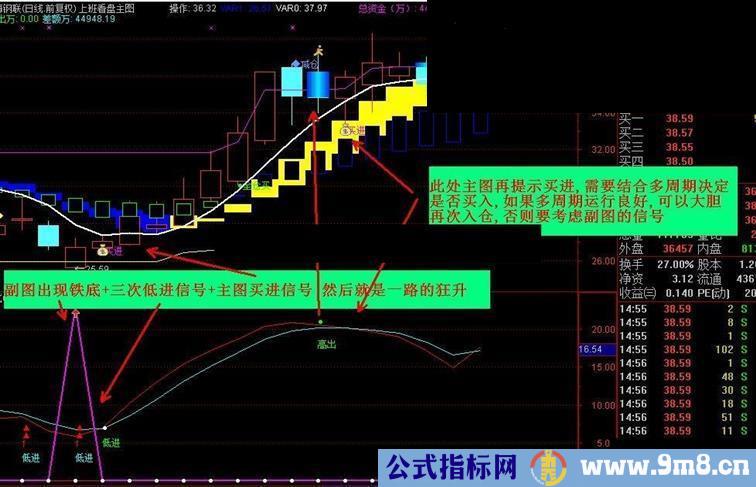 DRAWTEXT(CROSS(J,REF(J+0.01,1)) AND X AND J<19,3,'低进'),COLORFFFF00;
