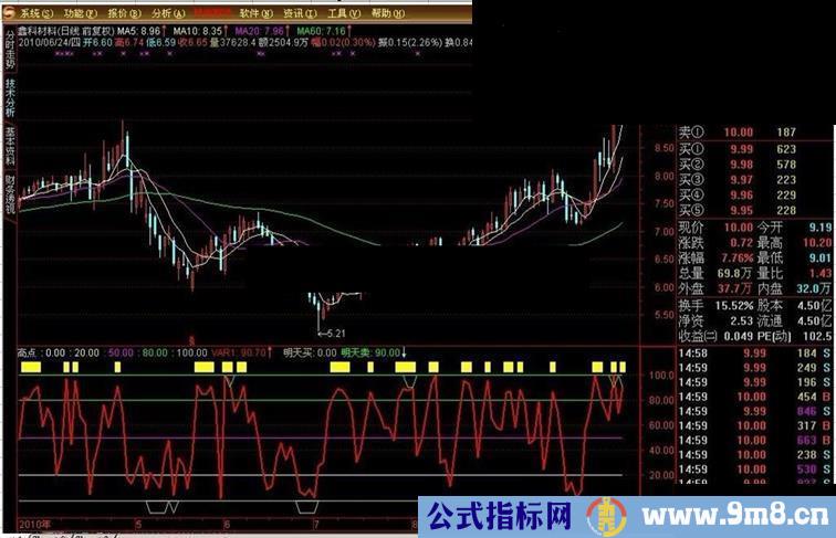 明天买:IF(买卖=100,0-10,0),COLOR00CCCC;