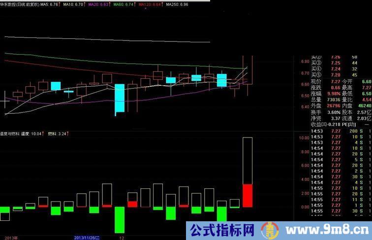 黄空柱表示温度,股价的相对位置;