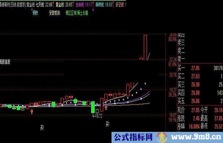 第三, 择机买进:买进时间一般最佳为收盘前一个小时,选择股价维持在全天最高点附近的股票逢底介入;开盘后1个小时以内是卖出股票的好时机,15分钟以内不能买股票,但是可以按照八卦箱体的下强支撑位埋单,一般冲高后都会回落,试探支撑位。