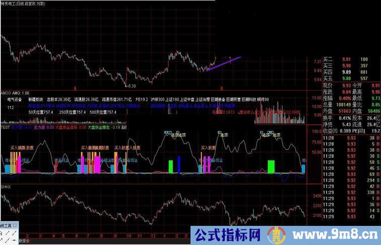 主力进: IF(V4>=0,V4,0),COLORFF00FF;