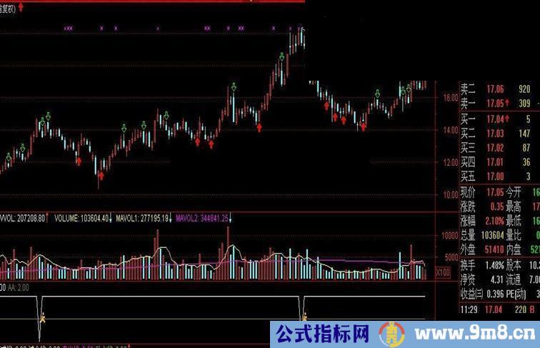 大家发了好多指标,大都是讨论选股和何时买入的,今天发一个逃顶的指标,告诉你什么时候卖出股票。 这个公式含有未来,如果出现信号后股价继续上涨,该信号可能消失,但是这个也是能保护你的资金的必要手段,个人觉得不是大问题。反而是,这个信号出现后,多数股票如期转弱下跌,所以个人觉得是很有用的。