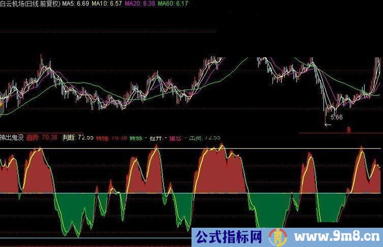 拉升:IF(判断>50 AND 趋势>判断,判断,DRAWNULL),COLORYELLOW,LINETHICK2;