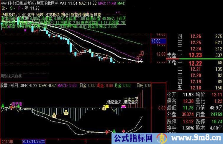 日死:IF(CROSS(日DEA,日DIFF),-0.1,0),COLORYELLOW;