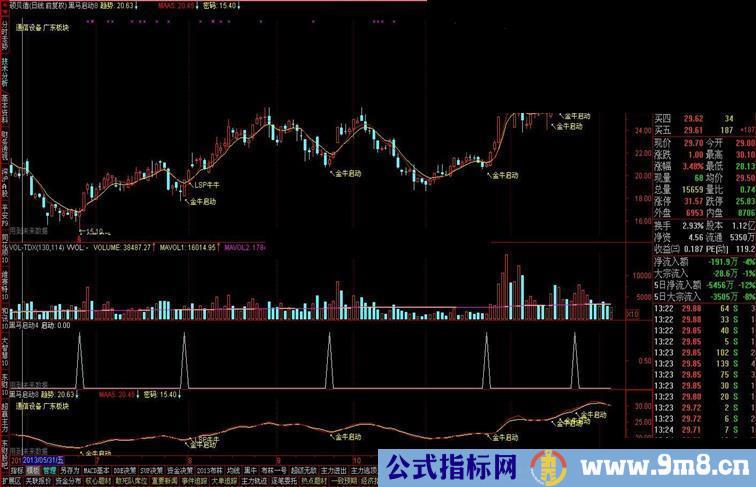 DRAWTEXT(启动,L*0.97,'↖金牛启动'),COLORYELLOW,LINETHICK2;