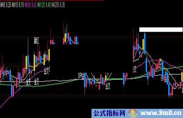 STICKLINE(SRI金叉,H,L,0,0),COLOR00FFFF;