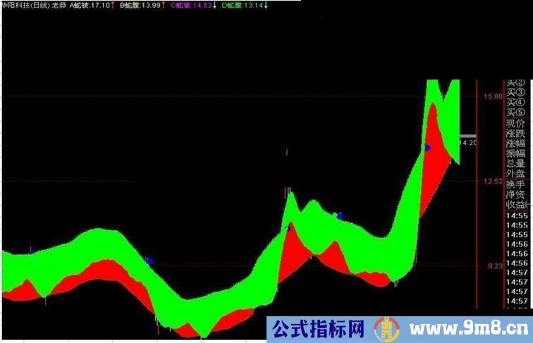 A蛇被:IF(CURRBARSCOUNT>BL/2,JBQS*1.1,REF(JBQS,BL/2+1- CURRBARSCOUNT)*POW(N,BL/2+1-CURRBARSCOUNT)*1.1),CROSSDOT;