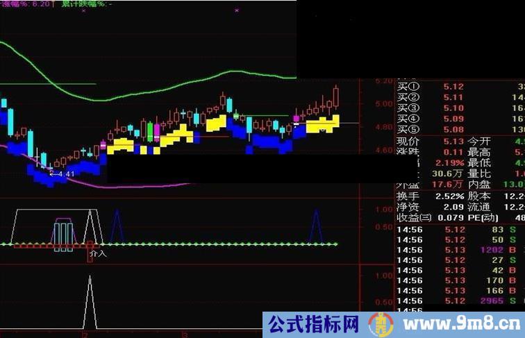 买:=C>=EMA(C,5) AND A>B AND B>REF(B,1) AND 增幅%>0 AND 买线>=卖线 AND 卖出>REF(卖出,1);