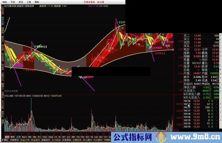 波段顶:(XMA(XMA(H,120),120)-XMA(XMA(L,120),120))*4+XMA(XMA(H,120),120),LINETHICK2,COLORYELLOW;
