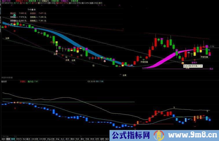 支撑位:IF(A1X>=0,REF(EMA(C,14),BARSLAST(CROSS(A1X,0))+1),DRAWNULL),COLORRED,LINETHICK1;