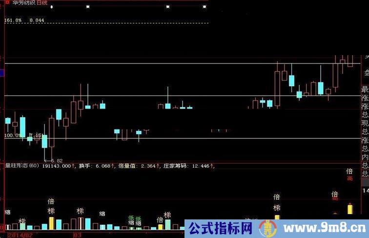 量柱标示采用汉字提示:高(高量柱)、低(低量柱)、平(平量柱)、倍(倍量柱)、梯(梯量柱)和缩(缩量柱);