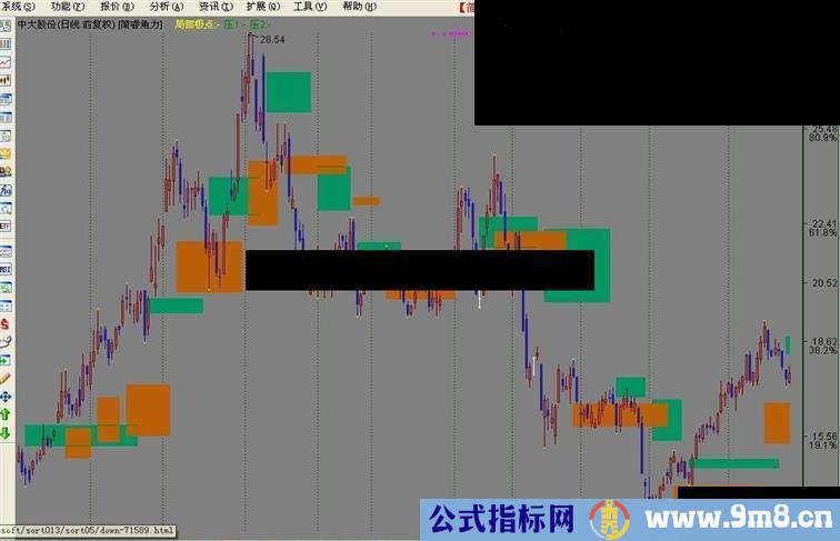 压2:IF(BETWEEN(XA63,XB45,XB63),XA63,DRAWNULL),COLOR008800;