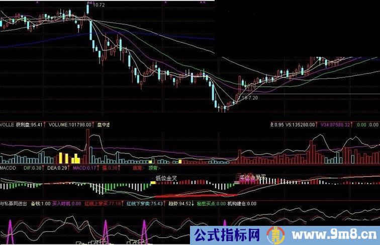 买入时机: IF(CROSS(J,3),65,0),COLORFF00FF,LINETHICK3;
