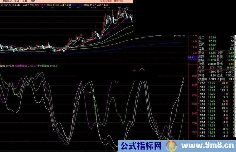 深证短线:SMA(SMA(RSV4,3,1),3,1)+3*STD("399001$CLOSE",21);