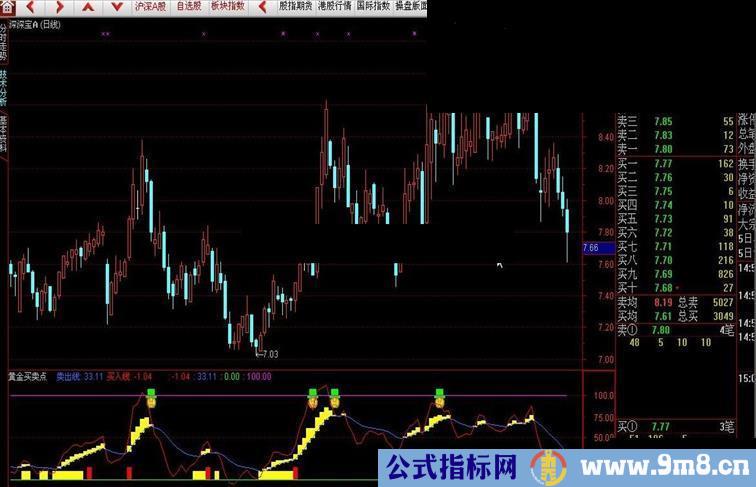 黄金点:STICKLINE(SMA(VARE,3,1)>卖出线,SMA(VARE,3,1),卖出线,3,0),COLORYELLOW;