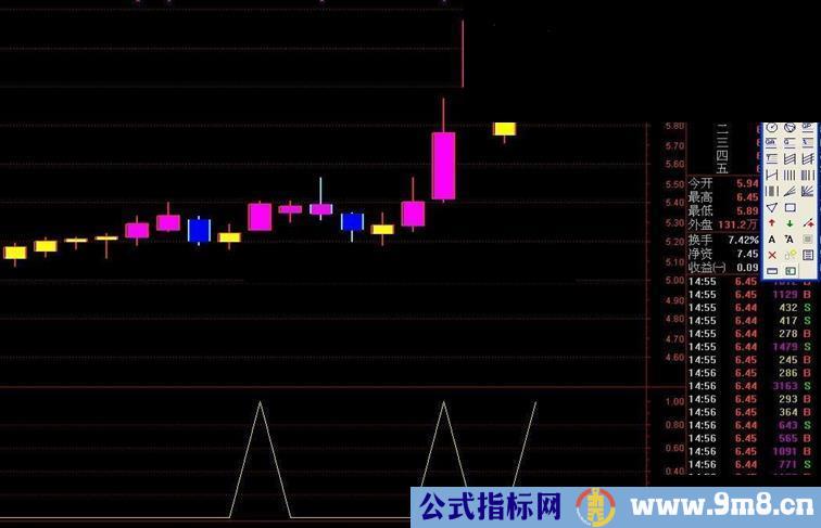 STICKLINE(开> 收 AND B,C,O,2.5,0),COLORFF00FF;