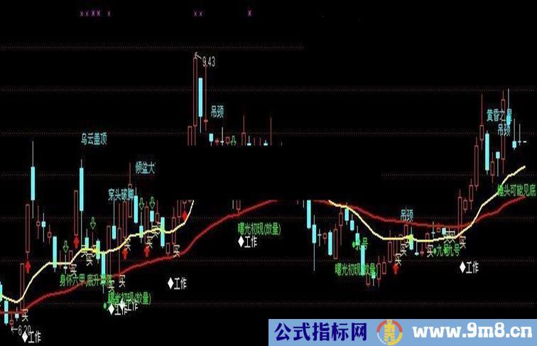 DRAWTEXT((工作线>=REF(工作线,1) AND 牛 AND L<工作线 AND H>工作线)