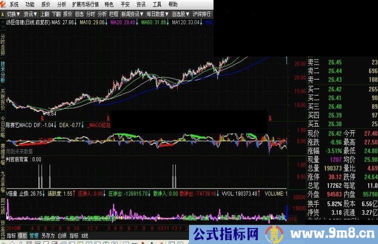 {判官MACD} DIF:=EMA(CLOSE,12)-EMA(CLOSE,26); DEA:=EMA(DIF,9),COLORYELLOW; A1:=BARSLAST(REF(CROSS(DIF,DEA),1)); 底背离:=REF(CLOSE,A1+1)>CLOSE AND DIF>REF(DIF,A1+1) AND CROSS(DIF,DEA); FILTER(COUNT(底背离,20) AND CROSS(C,MA(C,20)),5);