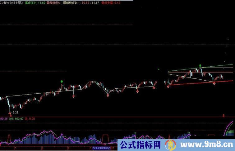 趋势线:=LLV(阶段底部,1),COLORFFFFFF;