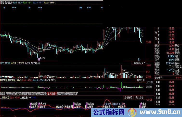 资金进场日:IF(A11>0,8,DRAWNULL),COLOR00FFFF,LINETHICK3,STICK;