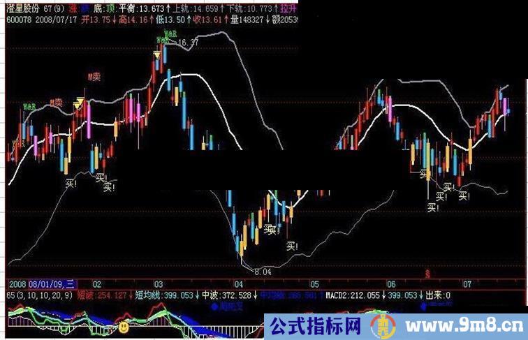 下:=BBI-P1*STD(BBI,N1);中:=BBI;AA:=BBI+P1*STD(BBI,N1)/2;BB:=BBI-P1*STD(BBI,N1)/2;