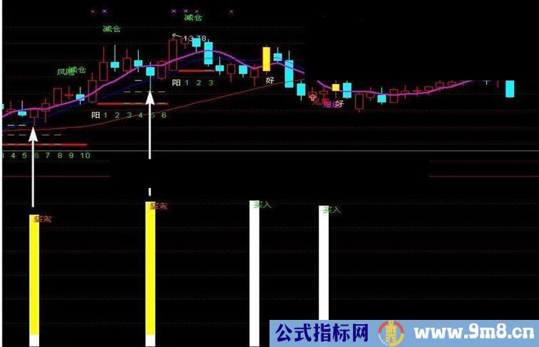 DRAWTEXT(CROSS(VAR9,0.9),LOW*1,'坚定'),COLORRED;