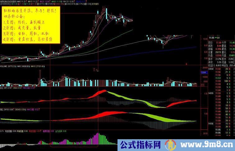 指标组合很简单,MA2、成交量、庄家抬轿,系统内自带。