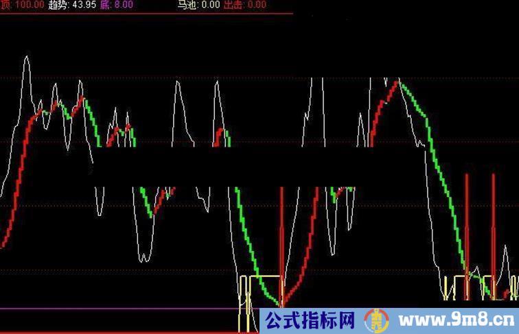 出击: IF(CROSS(趋势,底),50,0),COLOR0000FF,LINETHICK2;