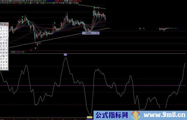 顶: DRAWICON(AA>90 AND AA>REF(AA,1),100,6),COLORGREEN;