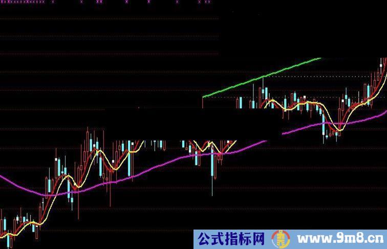 总趋势:EMA(EMA(EMA(EMA(EMA(CLOSE,55),2),2),2),2),LINETHICK2,COLORFF00FF;