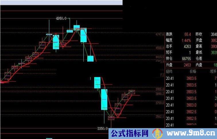 {安全防线} 明日防线:(H+L+3*C)/5,COLORGREEN; 今日防线:REF(明日防线,1),COLORRED,LINETHICK2; STICKLINE(明日防线>0.05,明日防线,明日防线,3,0),COLORGREEN; STICKLINE(今日防线>0.05,今日防线,今日防线,11,0),COLORRED; STICKLINE(CLOSE>0,(O+C)/2,(O+C)/2,3,0),COLORFF00FF;