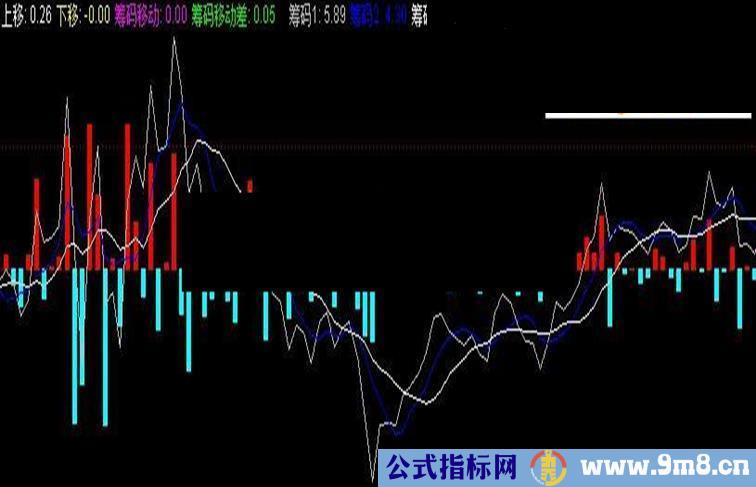 STICKLINE(筹码移动差>0,0,筹码移动差,2,0),COLORRED;
