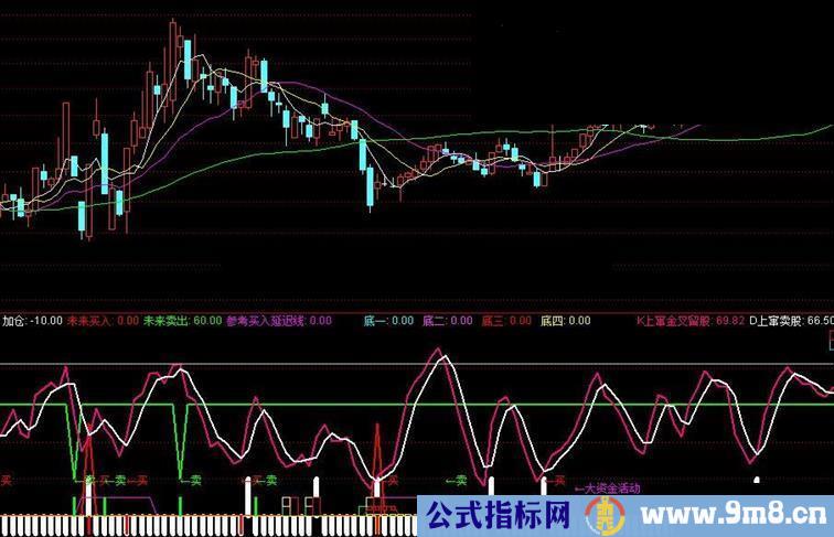 D上窜卖股: EMA(0.667*REF(K上窜金叉留股,1)+0.333*K上窜金叉留股,2),COLORWHITE,LINETHICK2;