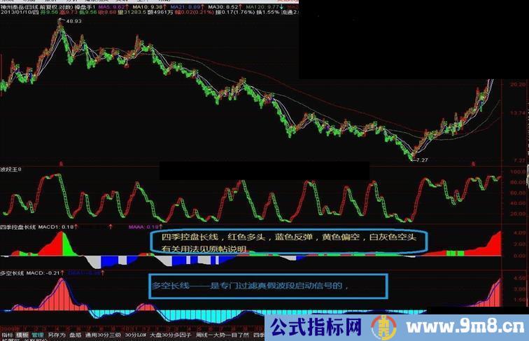 5:最后特别注明:指标的生命在于参数不断优化——,可能会有些朋友反应,有个别股票的【多空长线】信号不是特别清晰、醒目!