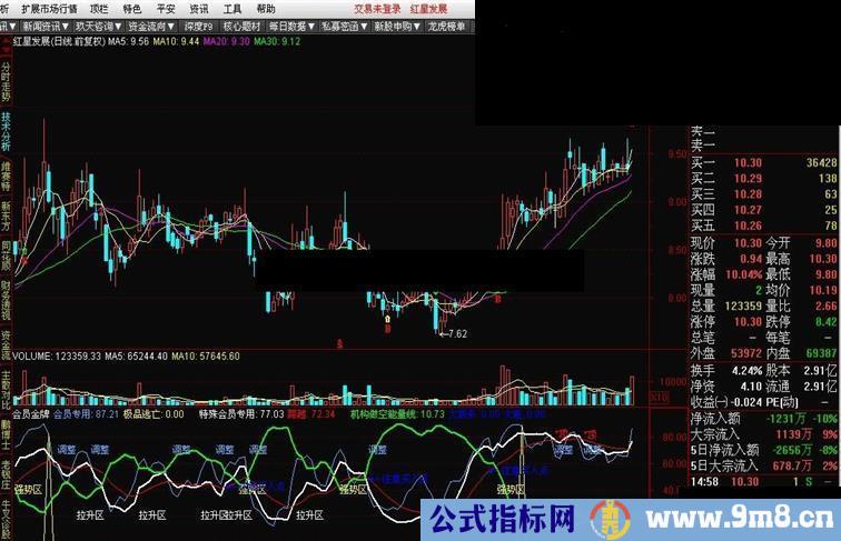 DRAWTEXT(CROSS(特殊会员专用,跨越) ,大底+20,'拉升区'),LINETHICK1;