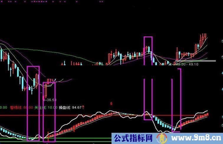 关注:=IF(CROSS(A5,安全),50,0),STICK,COLORMAGENTA,LINETHICK2;