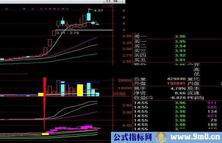 下趋势:=MA(HIGH,20)*0.8,COLORGREEN,LINETHICK2;