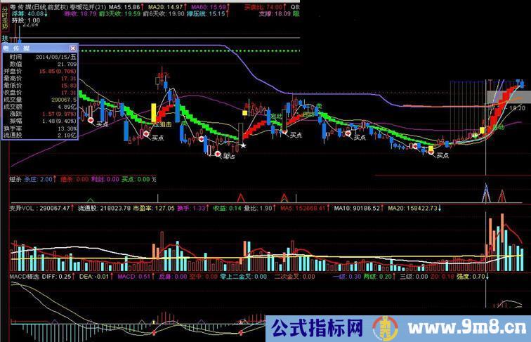 成交量和MACD是系统威力最大的指标,K线的组合,各均线的粘合、间距、多头排列、形态的流畅结合成交量和MACD————再配上自已适合的指标,一切牛股无所遁形,抓牛就这么简单。坛上有一个(自创变异成交量)虎头蛇尾,从8.06日至今也不给小散们一个交代,本人予以鄙视。今日为小散们奉献自已在使用与伏虎擒牛指标配套的成交量原创指标,并奉上成交量指标的源码。附图:请加深理解,指标只是尽快找到牛股形态,这需要你的功力和盘感,单独使用指标操作只会送你亏损而不是财富;看看300278第二个指标位置,你就会明白指标不是万能的。下载本指标后,如果你认为对你有帮助的话,请给我一点掌声,变异vol为我原创,如要转发,请注明出处,谢谢!切记:任何一个指标均需要量、价、时、空的配合......
