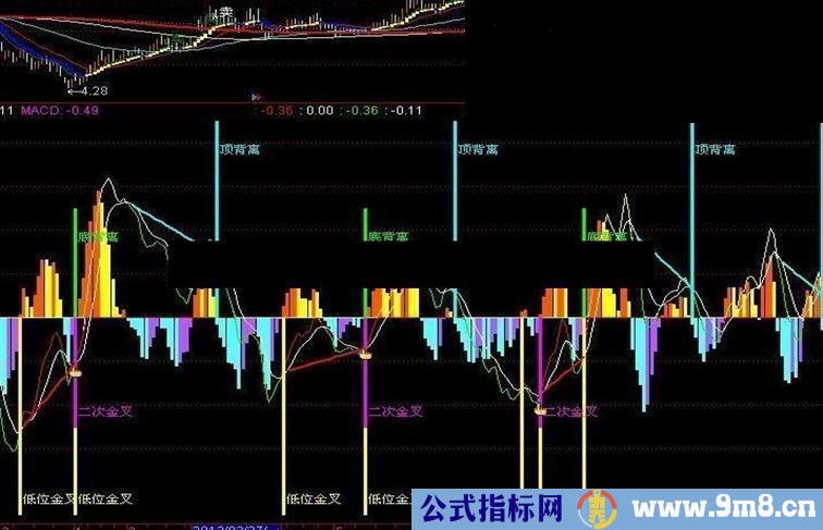 底背离:=REF(CLOSE,A1+1)>CLOSE AND DIFF>REF(DIFF,A1+1) AND CROSS(DIFF,DEA);