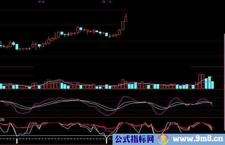 白穿黄线买:=IF(((CROSS(短期,中期)AND 中期<30)),-30,0),STICK,COLORFF9150,LINETHICK3;