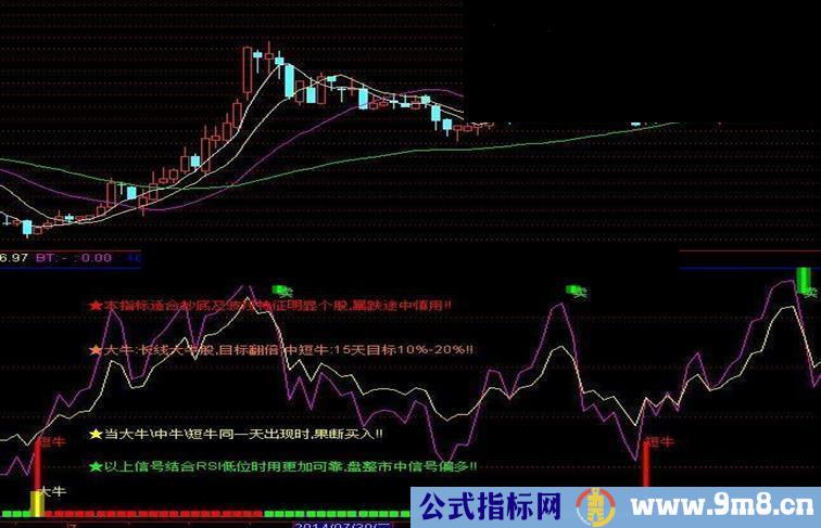 DRAWTEXT(CURRBARSCOUNT=89,3.3,'★当大牛/中牛/短牛同一天出现时,